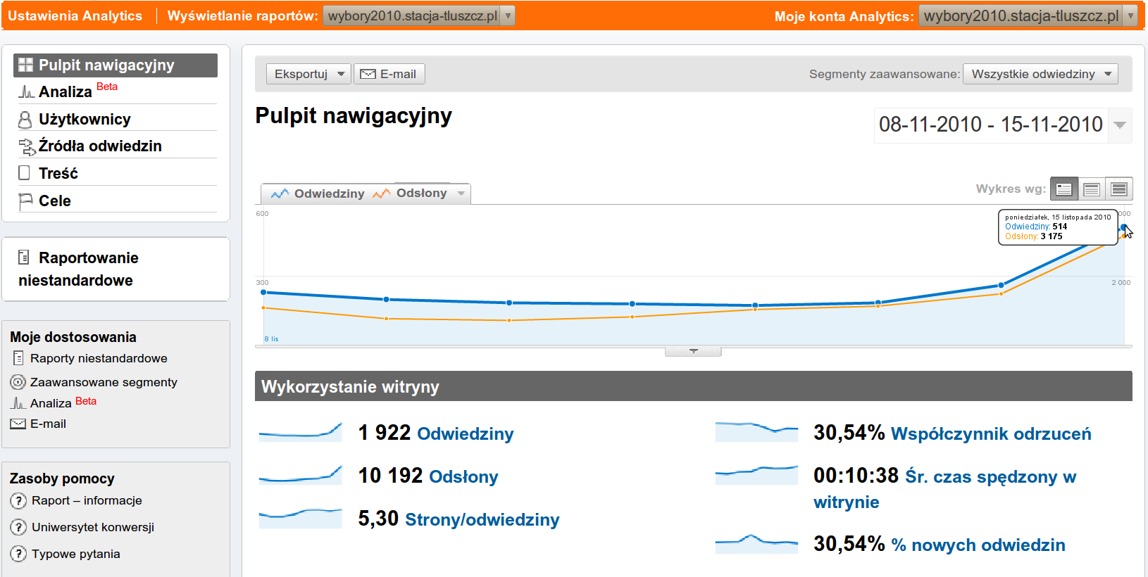 W ciągu ostatniego tygodnia naszą stronę odwiedziło 1 922 internautów. Zanotowała ona 10 192 odsłon. Średni czas spędzony na naszej witrynie wynosi 10:38 minuty.